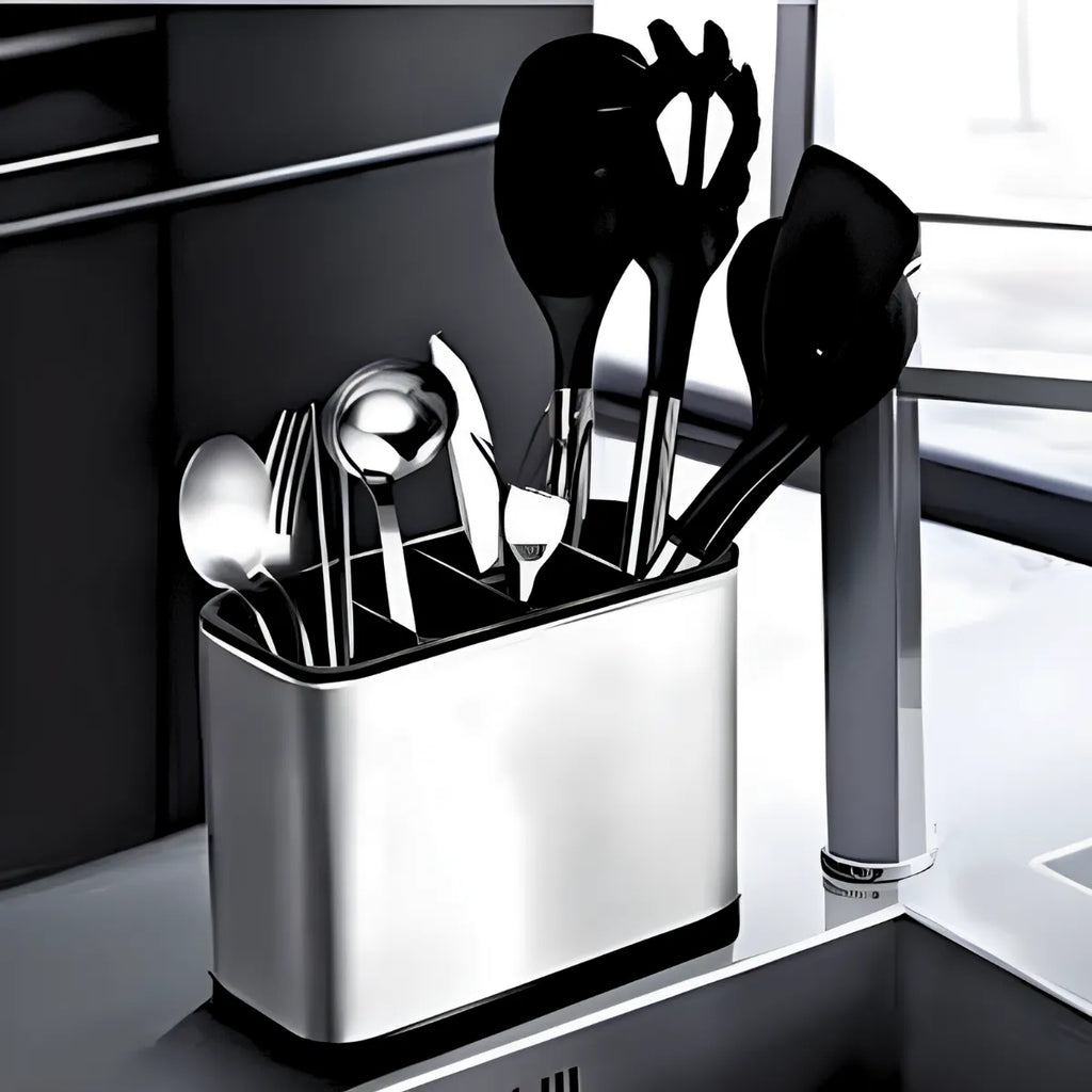 Dispenser Porta Talheres Inox com 4 Divisórias – Organização e Elegância para sua Cozinha