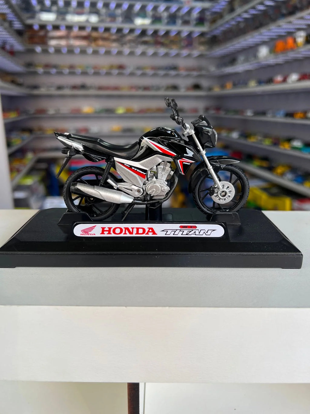 Miniatura da moto Honda CG Titan 160, 2016, na escala 1:18.